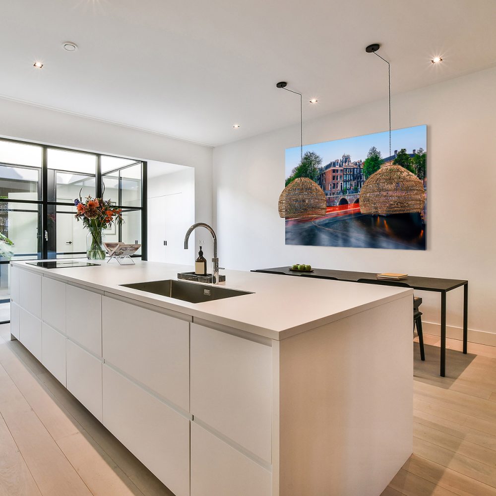 Het stijlvolle en solide aluminium ophangframe wordt door ons aan de achterzijde van de print gemonteerd. Dit frame wordt gemonteerd bij de formaten 80x120cm en 100x150cm.