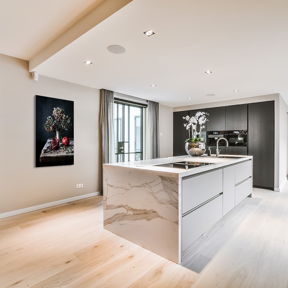 Dibond zorgt voor een stoere en moderne uitstraling. Dankzij de matte afwerking staat het kunstwerk centraal, ongeacht de lichtinval.