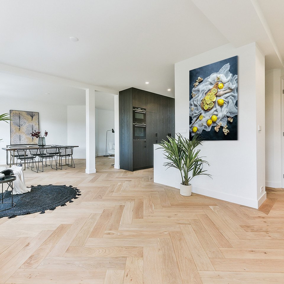 Dibond zorgt voor een stoere en moderne uitstraling. Dankzij de matte afwerking staat het kunstwerk centraal, ongeacht de lichtinval.