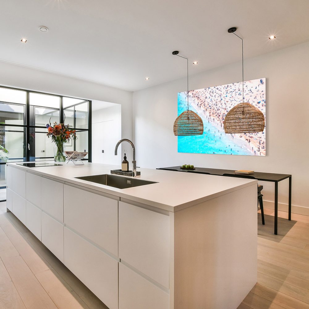 Het stijlvolle en solide aluminium ophangframe wordt door ons aan de achterzijde van de print gemonteerd. Dit frame wordt gemonteerd bij de formaten 80x120cm en 100x150cm.